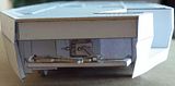 Pomysł zbudowania modelu tego tramwaju chodził mi po głowie od dłuższego czasu. Stawał się bliższy realizacji w miarę zbirania coraz większej ilości dokumentacji (głównie z internetu, ale także z własnych obserwacji). Na razie powstały wózki oraz duża część podwozia. Nad modelem pracuję już około 3 tygodnie, ale przez ten czas nie miałem dostępu do aparatu cyfrowego -od tego momentu prace będą już do końca dokumentowane. Pierwotnie miałem zamiar pomalować wózki po sklejeniu, jednak po wszystkim okazało się że ilość szczegółów przerosła moje oczekiwania i nie wszędzie uda mi się dotrzeć pędzlem. Wymyśliłem że model będzie biały, później ewentualnie zbuduję drugi kolorowy. Na zisiaj stan prac przedstawia się następująco: