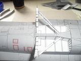 Kadłub jest oklejony już poszyciem, ale nie wiem czy wyszło to aż tak dobrze jak wyobrażałem sobie. Musiałem przyciąć części nr 9L i 9P - te od razu za kokpitem, nie wiem czy zrozumujecie. A tak w ogóle to poszycie nr 13 - te ostatnie - wychodzi poza kadłub, ale to też wina opracowania. W relacji, którą podawał scorpions, autor relacji miał taki sam problem. Ale trudno i kleję dalej.