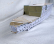 Obecnie oklejam kadłub kawałkami wydrukowanymi na samoprzylepnym papierze do drukarki.