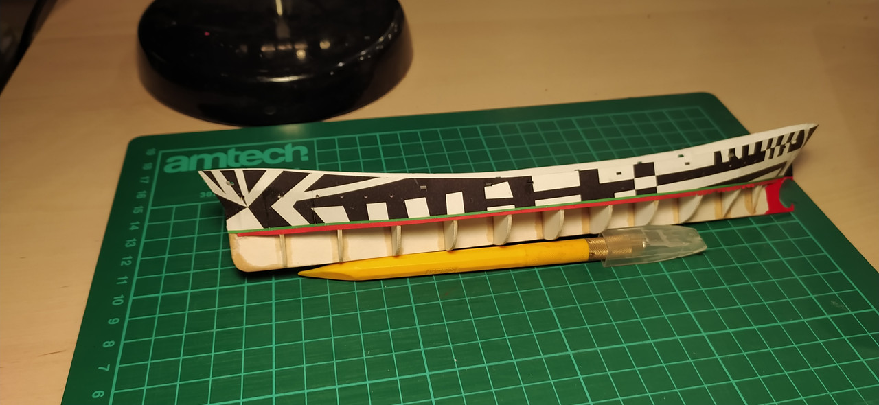 Zacząłem od szkieletu. Dochodzą mnie słuchy, że komuś nie pasuje konstrukcja z tektury 0,5mm więc narysowałem ją wokół 1mm.