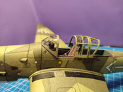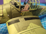 Z powodu ze owiewka jest otwierana, to w nowej sekcji musiałem wyciąc szparę na wcześniej wklejoną szynę. Jako, że mięsa w tym rejonie jest mało, to ramę owiewki nakleilem na wycięty kawałek folii i tak w całości przykeiłem do kadłuba. Szparę wyciąłem dopiero na wymiar po wklejeniu. Wyszło dobrze, owiewka swobodnie się przesuwa po szynie ,nigdzie nie zaczepia.