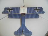 - Jedyne znane mi zdjęcie pokazuje ten samolot z czerwoną farbą tylko na części krytej blachą. Przednia część pokrycia płóciennego, aż do kabiny, jest pomalowana w sposób typowy dla wczesnych Fokkerów D.VII - góra i boki w oliwkowozielone, niejednorodne, pionowe smugi na jasnym tle (kolor płótna lub błękitny), dół błękitny. "Skrzydełko" podobnie (możliwe jest pomalowanie go od góry na niebiesko, jak pozostałych skrzydeł.