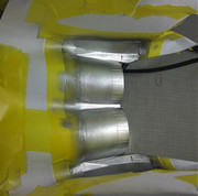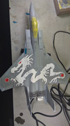 Tak przygotowany model został znowu zamaskowany w celu nałożenia metalizerów w tylnej części samolotu.